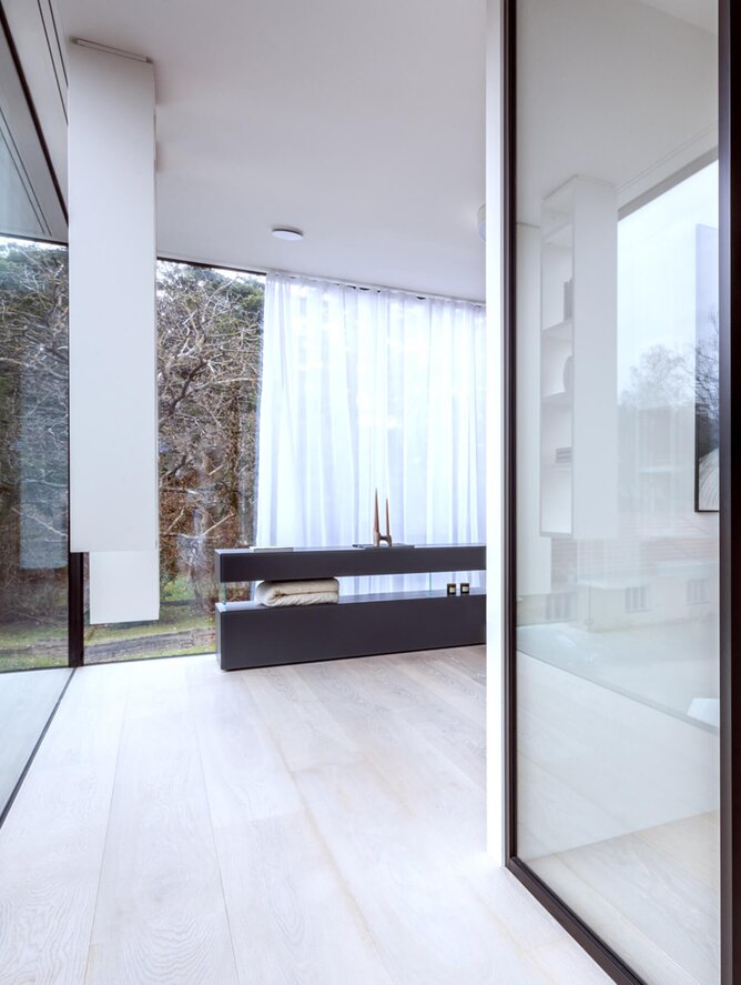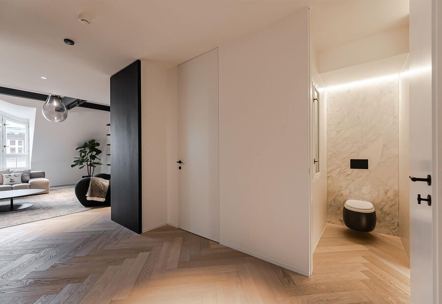 Białe pigmenty w połączeniu z dębowym drewnem tworzą uroczą grę refleksów świetlnych i słojów drewna. Podobnie jak w przypadku kolekcji Ink, biel optycznie zmiękcza charakter drewna i tworzy niepowtarzalne powierzchnie.