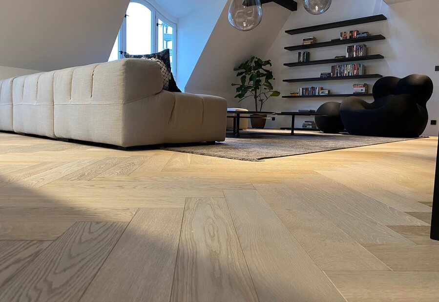 Bielone podłogi z kolekcji Ivory występują w różnych odcieniach - od jasnej do bogatej bieli.