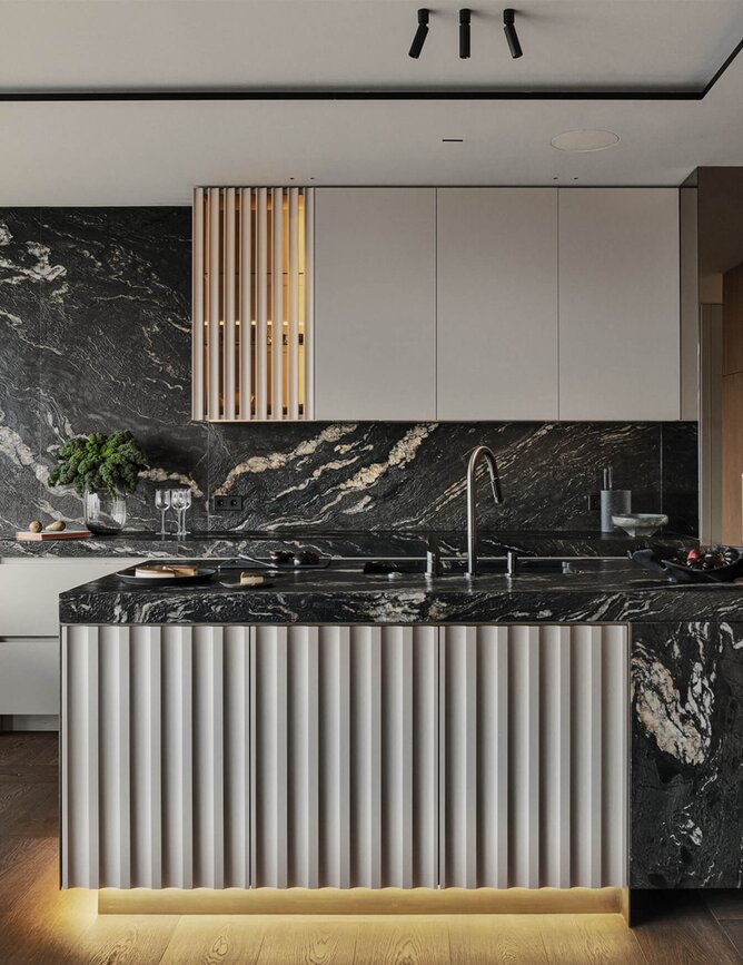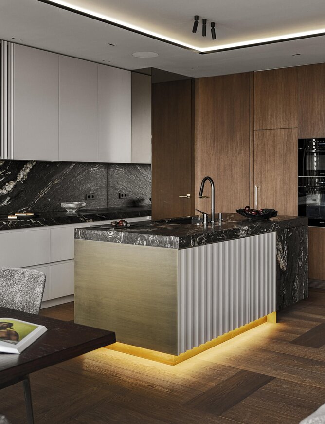 W samym sercu Warszawy powstał wyjątkowy apartament zaprojektowany przez Arch. Katarzynę Kraszewską Architektura Wnętrz, który łączy w sobie wyrafinowaną pracę z materiałem i naturalną grę kontrastów. Wnętrze harmonijnie łączy naturalny kamień, rzeźbiarski dobór mebli i starannie skomponowane oświetlenie. Oakcent został zaproszony jako partner do stworzenia ekskluzywnego rozwiązania podłogowego, które reaguje na światło, geometrię przestrzeni i jednoczy różne strefy w spójną całość.